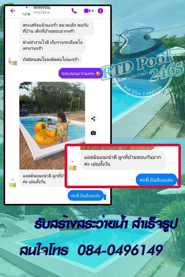 - พึงพอใจกับสีของไลเนอร์ RTDPool2465บริษัทรับสร้างสระว่ายน้ำ