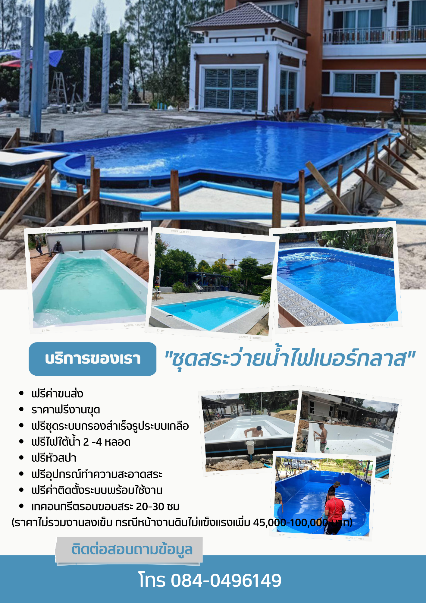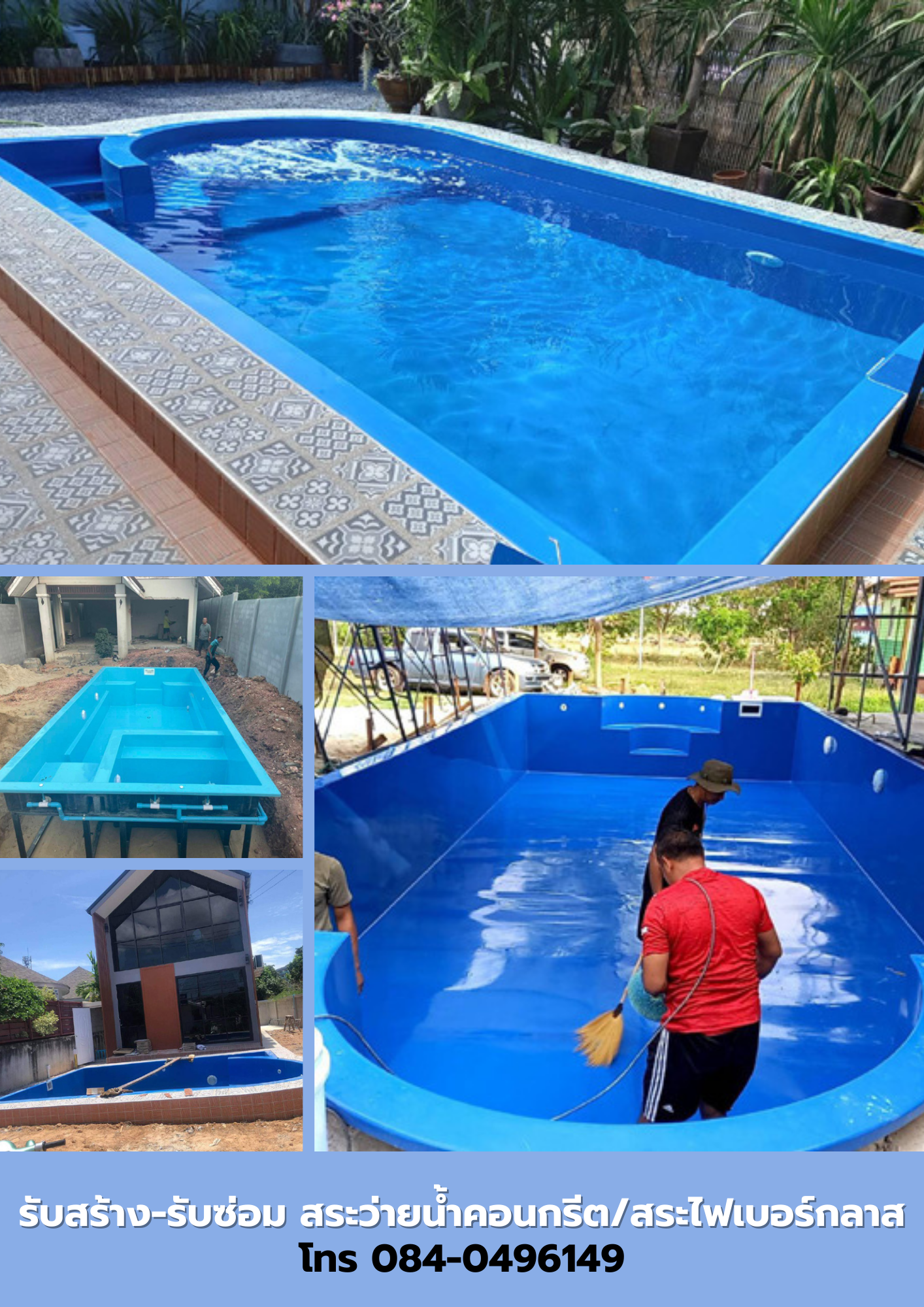 รับสร้าง-รับซ่อม สระว่ายน้ำคอนกรีต/สระไฟเบอร์กลาสสร้อยฟ้า